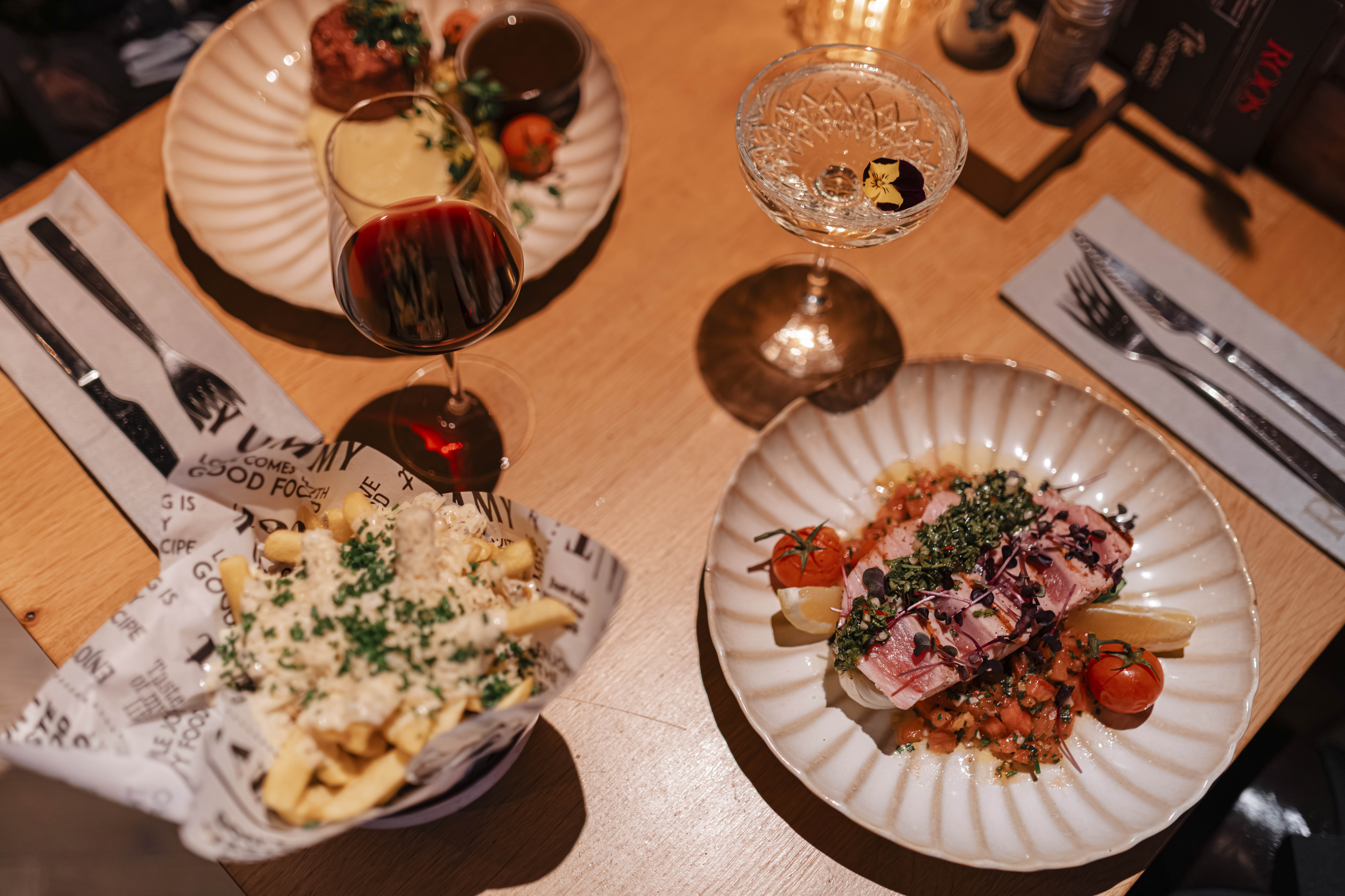 Genieten betekent hier: heerlijk eten met zorgvuldig uitgekozen wijnen. Wij hopen dat jullie je snel thuis zullen voelen bij Roos. Lunchen en blijven hangen tot ver voorbij de borrel, bij Roos kan dit.