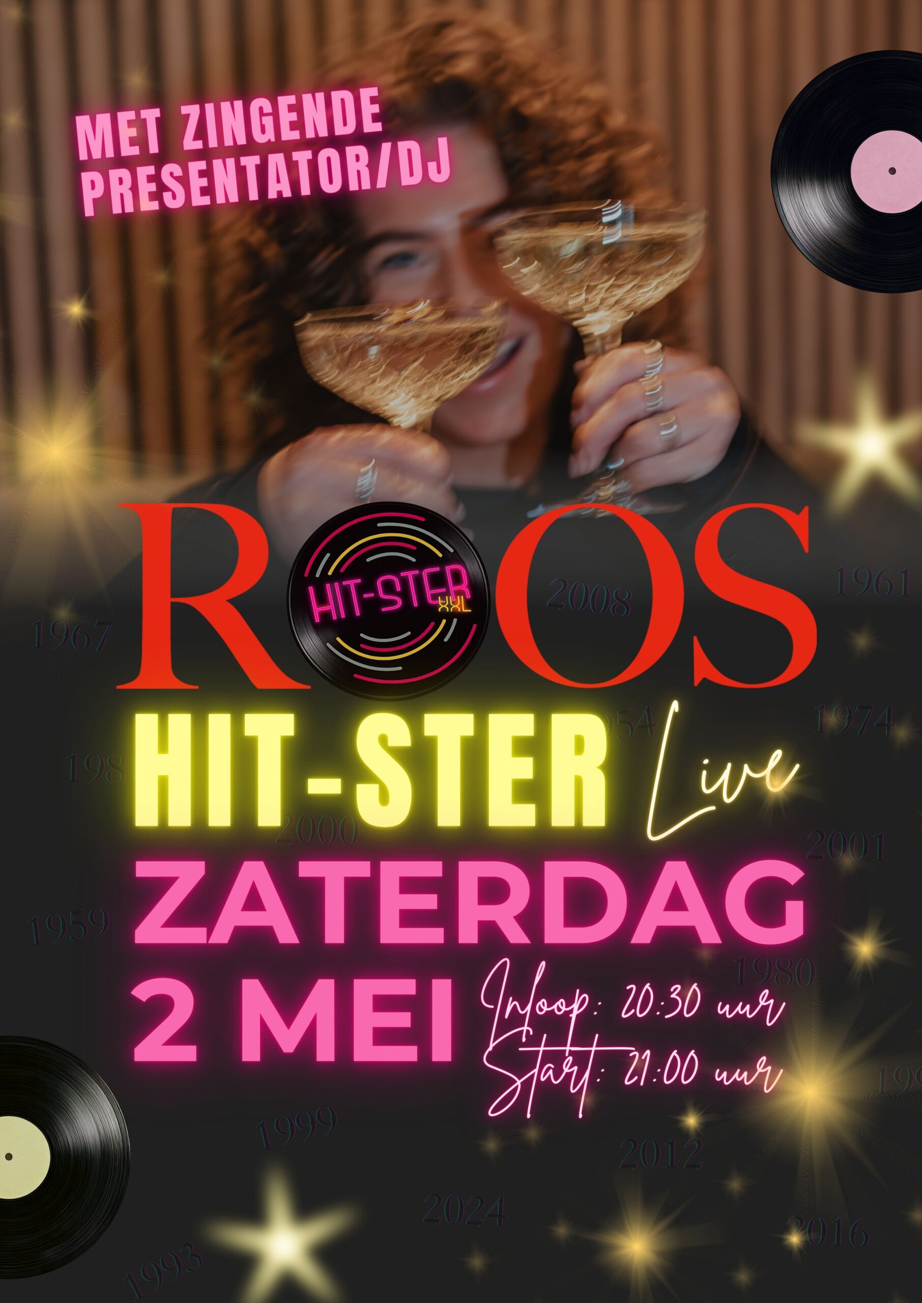 NIEUW bij Roos! Hit-ster live met zingende presentator/DJ. Op zaterdag 2 mei ga jij met je team de strijd aan om als team de Hitster kampioenen te worden. Dit is de show waarin je samen met je team tegelijkertijd Hitster speelt. De zingende presentator loopt rond en brengt de grootste hits uit meer dan 50 jaar muziekgeschiedenis tot leven. Aan jouw team de uitdaging om te raden: waar hoort dit nummer thuis op de tijdlijn, wat is de titel en wie is de artiest?